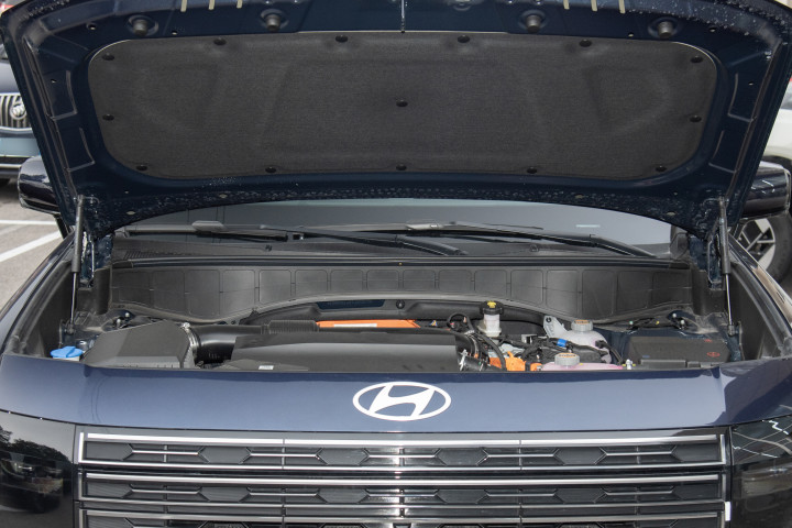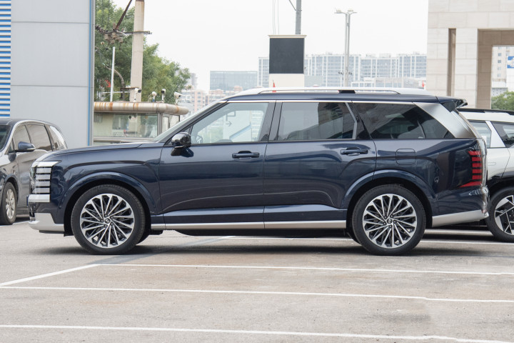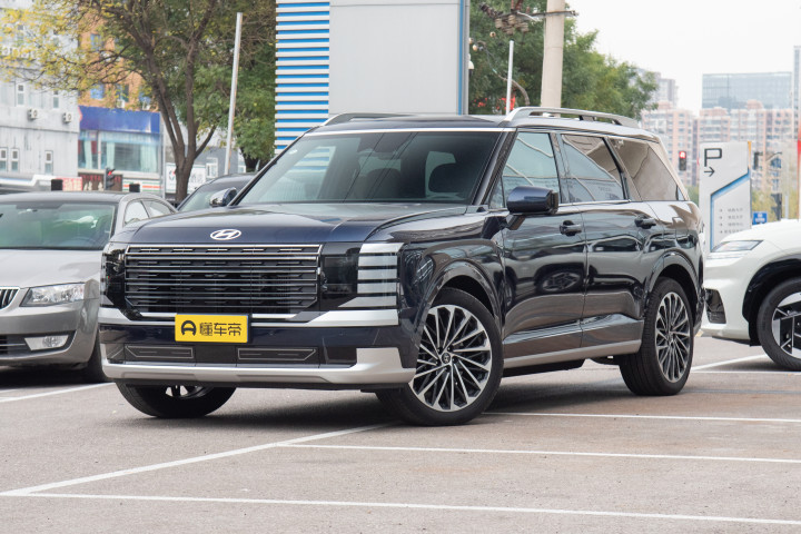 先聊外观吧。新一代帕里斯帝直接同步了海外版最新造型,你第一眼看到这车,脑海里的第一反应就是“气场够、很立体”。以前那个3.5L自然吸气帕里斯帝其实有些老派,现在这台明显更现代,方正的车头立起来视觉冲击力十足,包括硕大的现代车标直接铺在机盖前端,没有其他花哨修饰,识别度很高。中网是真的够大,官方叫“多层主动进气格栅”——反正你要近距离看,基本车头一下子就多了足够的气势。两侧远近光LED隐藏在熏黑饰板里,不同于一些德系粗线条,是很细致的黑色处理,看起来更有高级感。最引人注意的是竖向布局的日间行车灯,设计师用上了多层白色灯带,点亮效果很新颖,有点像欧系大SUV“高冷+科技感”那路子。