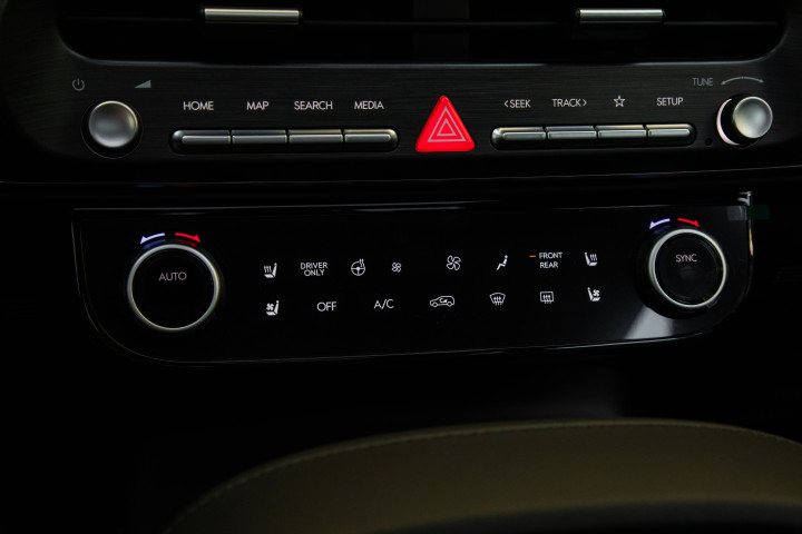 电子旋钮换挡用起来很顺手,比传统机械档杆省空间,中间扶手箱是做成对开式,还有UV-C杀菌功能,平时家里孩子多,把口罩钥匙都消好毒觉得挺贴心。下方空调出风口采用了新造型,旁边还保留了部分物理按键和旋钮,这对于家里老人和不太会用触控的人来说真的很人性化。车机不仅支持车联网,还能OTA升级、手机互联和映射,配置层面数一数二。实际操作起来,菜单逻辑简洁,常用功能都直观显示,调导航、蓝牙、音乐一气呵成。座椅和内饰用料我反反复复摸了一圈,古木棕是旗舰专属,质感特别有档次感,黑色和暖灰很耐看,碳灰适合年轻化家庭。