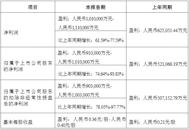 公告进一步指出,申万宏源全资子公司申万宏源证券有限公司(下称“申万宏源证券”)本报告期净利润预计为100.00亿元至110.00亿元,比上年同期增长62.04%至78.24%;归属于母公司净利润预计为99.00亿元至109.00亿元,比上年同期增长60.29%至76.48%。